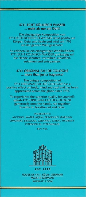 Wees de eerste om “4711 Original Unisex – 150 Ml- Eau De Cologne” te beoordelen Reactie annuleren