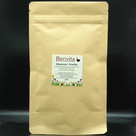 100% zuiver Ghassoul of Rhassoul kleipoeder komt uit het Atlasgebergte en dan specifiek uit de Moulouya vallei in Marokko. Deze geurloze, beige klei is afkomstig van een slapende vulkaan. Ghassoul of Rhassoul poeder wordt in Marokko al eeuwen gebruikt als natuurlijk reinigingsmiddel voor huid en haar. Bevat geen chemische toevoegingen, zoals parfum of kleurstoffen. Ghassoul poeder is verpakt in een hersluitbare, eco-vriendelijke pouch verpakking.