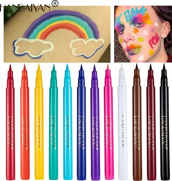 Black Friday HANDAIYAN 12 Kleuren Mat Sneldrogend Niet Gemakkelijk Uit Te Vegen Kleur Eyeliner Set Make-up Show