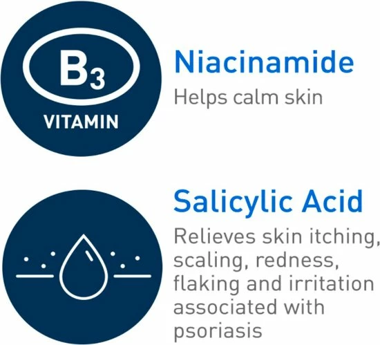 - 2% salicylzuur: verlicht jeuk, schilfering, roodheid, schilfering en irritatie van de huid die gepaard gaan met psoriasis
