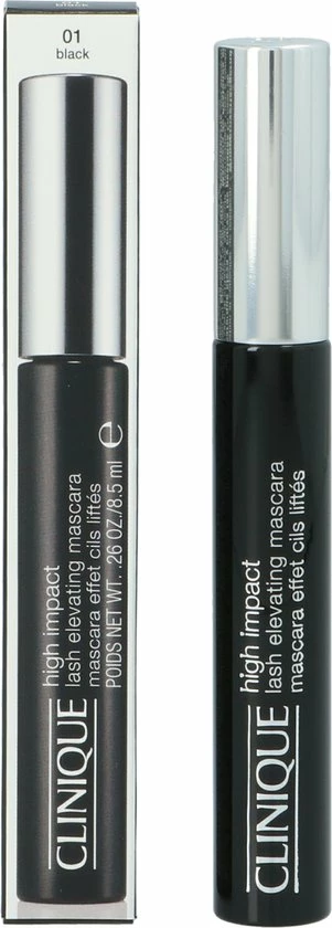 De High Impact Lash Elevating Mascara van Clinique is een mousse-achtige mascara die wimpers lift zonder ze zwaarder te maken. Innovatieve polymeren geven wimperhaartjes krul en vorm en houden ze de hele dag op hun plaats zonder dat ze na een tijdje gaan hangen. De mascara vlekt, klontert en kruimelt niet. Verzorgende oli?n houden de wimperhaartjes gezond en zacht. Het puntige borsteltje geeft iedere wimperhaar een mooi egaal laagje met volume dat opgebouwd kan worden tot een fraaie waaiervorm.