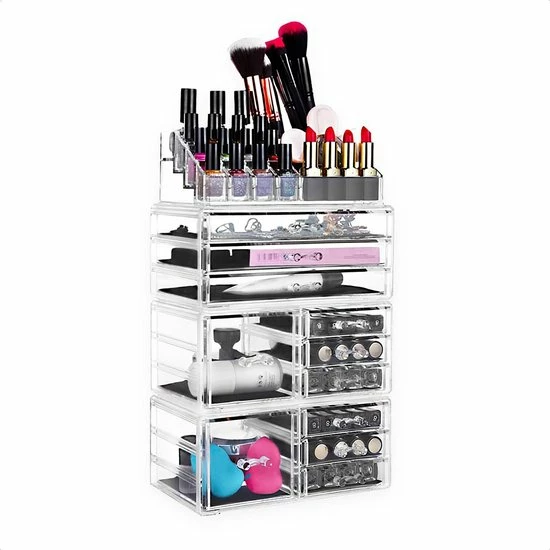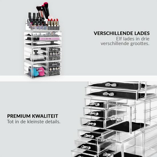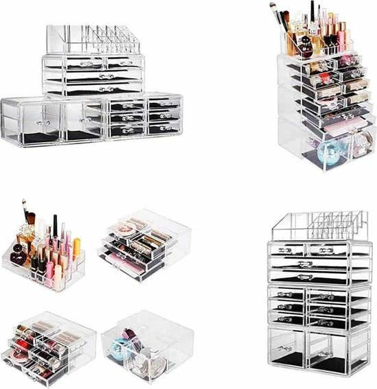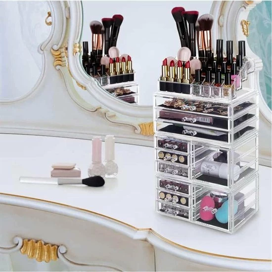 De transparante kleur zorgt voor meer overzicht. Je hoeft niet al je lades open te schuiven om je make-up of sieraden te vinden. Zo kan in je in een oogopslag de benodigde producten vinden.