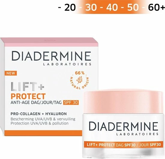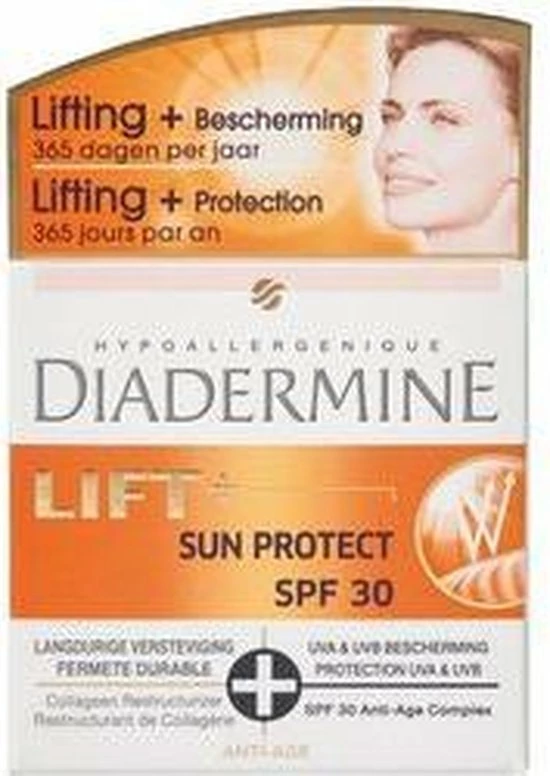 Diadermine Lift+ Sun Protect combineert 2 krachtige anti-age werkingen dat zorgt voor langdurige versteviging en bescherming tegen ernstige celschade en huidveroudering veroorzaakt door UV stralen en Infrarood. Voor alle huidtypes.