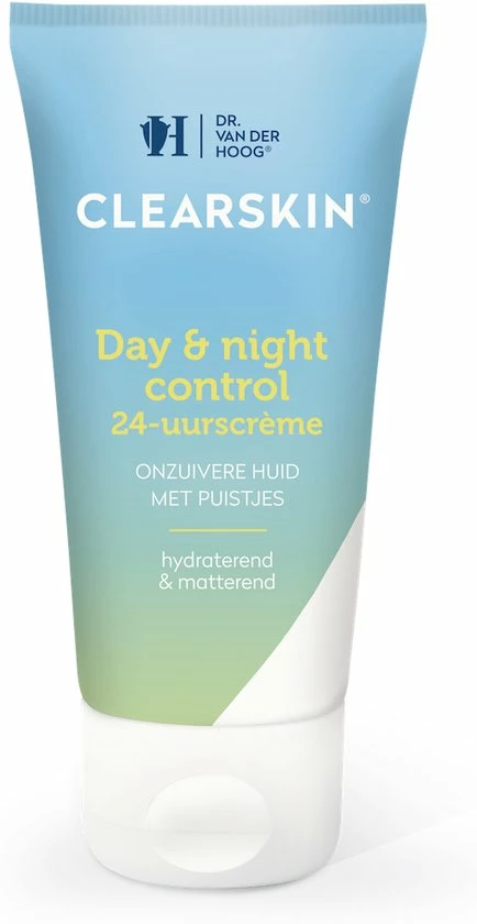 ClearSkin day & night control is een vetvrije crme die geschikt is voor de onzuivere huid als dag- en nachtcrme. De day & night control is verrijkt met salicylzuur en bramenbladextract die een zuiverende werking hebben en overtollige talgafscheiding normaliseren. Bovendien zorgt salicylzuur ervoor dat de huidvetten tussen de cellen opgelost worden waardoor deze eerder dode huidcellen zullen afstoten. Zo kunnen er minder snel onzuiverheden ontstaan door verstopte porin.