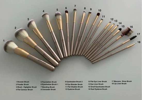 De combinatie van champagne/goud kleuren en de, met zorg geselecteerde, hoge kwaliteit materialen, geven de kwasten een luxe en chique uitstraling.