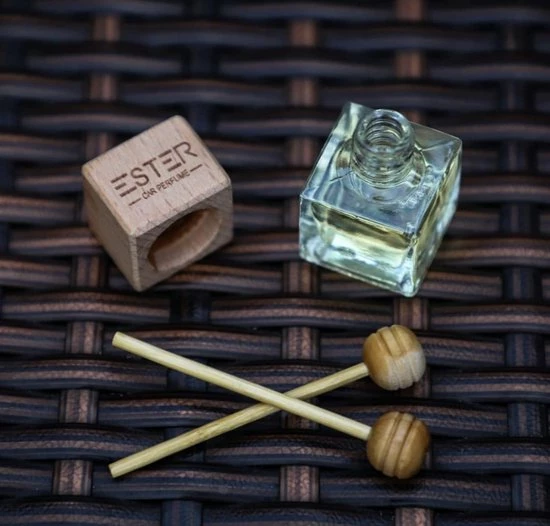 In de verpakking treft u een houten dop, glazenfles met 100% parfumolie, touw (om het op te hangen) en een luchtrooster ring (om het in de luchtrooster te plaatsen).