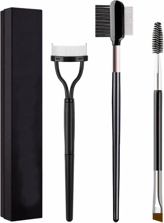 Deze zwarte 3-delige Able & Borret gezichtsverzorgingsset bevat alle benodigdheden om je wimpers en wenkbrauwen te verzorgen. De ergonomische metalen wimperkam maakt het mogelijk om eenvoudig naar boven te borstelen zonder je hand te hoeven draaien. Het dubbele ontwerp van de wenkbrauw borstel is uniek en veelzijdig. Je kunt hem gebruiken om je wenkbrauwen te verzorgen met poeder of crème en met de andere kant van het penseel kun je je wimpers verzorgen met of zonder mascara. De set is gemaakt van hoogwaardig materiaal dat lang meegaat en gemakkelijk schoon te maken is.