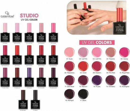 UV Studio Gel Color system met 17 modieuze kleuren.
