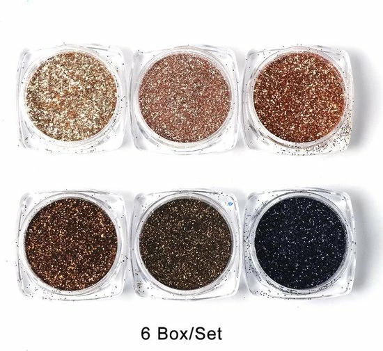- ? 6 verschillende Nail Art kleuren glitter poeder