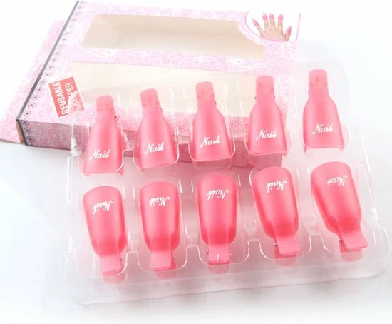 Soak Off Clips voor het eenvoudig en snel verwijderen van Acryl, Gel, Gellak en Nagellak. In combinatie met soak off wraps en nagellakremover, aceton of soak off remover verwijder je snel ieder merk van je nagels! De Soak Off Remover Clips zijn herbruikbaar en passen gemakkelijk over iedere vinger!