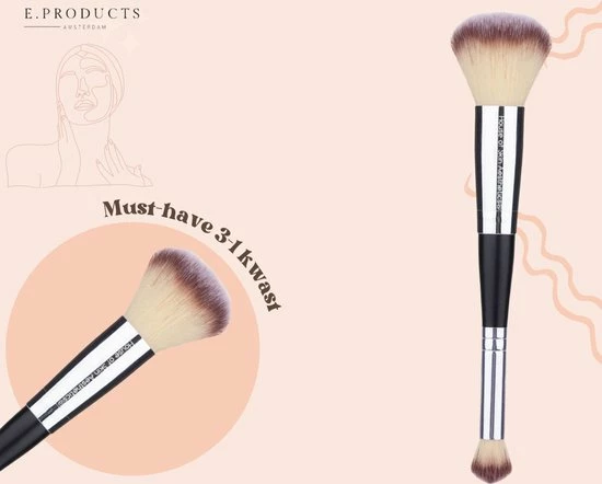 Onze 3-in-1 kwast is een echte bestseller en een must-have kwast in je make-up routine! Zo eenvoudig in gebruik dat het het aanbrengen van je favoriete foundation, poeder ?n concealer heel gemakkelijk maakt. Deze bekroonde, tweezijdige heavenly luxe kwast is zacht voor de huid en voorzien van synthetische haren die niet uitvallen en nauwkeurige opzetborstels voor een perfecte en natuurlijke dekking zonder strepen.