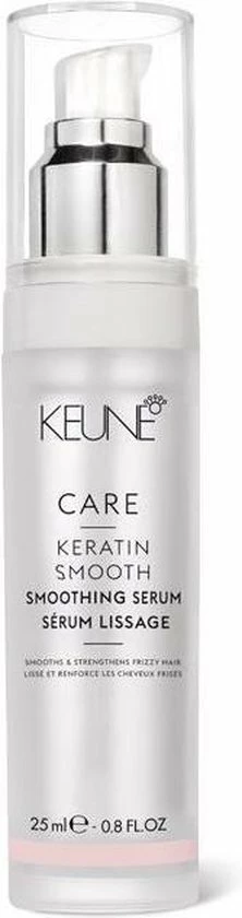 De Keune Care Keratin Smooth Smoothing Serum is een verzachtend serum dat pluizig haar bestrijdt. Ook beschermt dit product het haar tegen de hitte van stijltangen en föhns.
