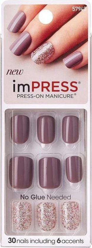 Kiss imPRESS Press-on Nails bevat 30 kunstnagels in verschillende maten, een prep pad en een manicure stick. De plaknagels zijn eenvoudig te verwijderen en beschadigen de natuurlijke nagels niet.