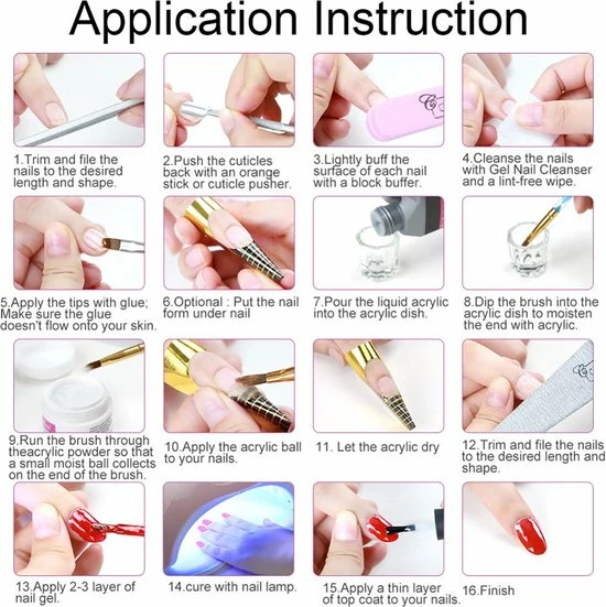 Nagelproducten bevatten chemische componenten, wees voorzichtig bij het gebruik ervan. Als uw kit lijm bevat, kan de lijm ? t worden laten vallen op de huid of doek.