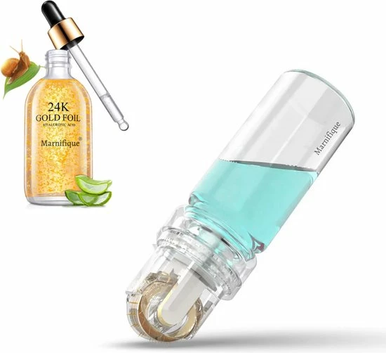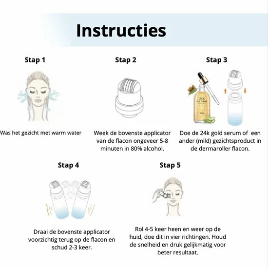 - Doe de 24k gold serum of ander (mild) gezichtsproduct in de derma roller flacon.