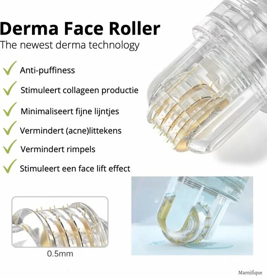 De dermaroller is een eenvoudige tool waarmee je minuscule gaatjes prikt in de huid met behulp van titanium naaldjes. Dit zorgt ervoor dat de huid wordt aangezet om te vernieuwen en collageen aan te maken. Normaal gesproken wordt slechts 1% van gezichtsverzorgingsproducten door de huid opgenomen. De hydra derma roller maakt het n?g eenvoudiger doordat het gewenste product direct op de huid komt tijdens het rollen. Hierdoor wordt het gezichtsproduct tot wel 90% opgenomen door de huid. De minuscule gaatjes die de dermaroller cre?ert tijdens het rollen, helpt gezichtsproducten en actieve ingredi?nten tot diep in de huid te absorberen.