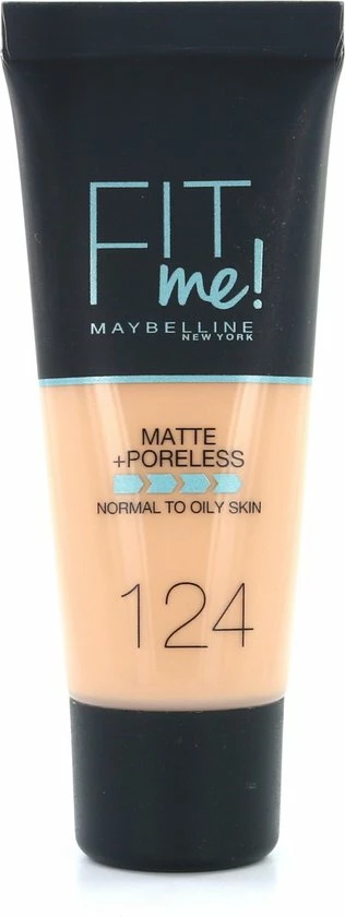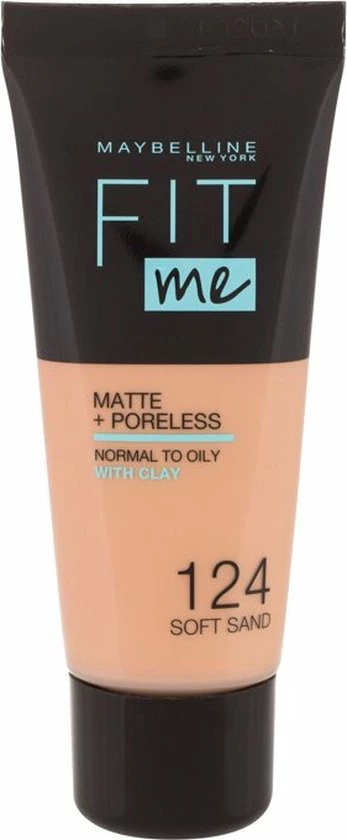 Maybelline New York Fit Me Matte & Poreless Foundation 124 Soft Sand is een medium dekkende foundation die moeiteloos kleurt met de textuur en kleur van de huid voor een natuurlijk ogend resultaat.