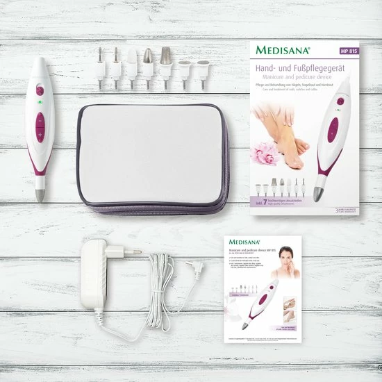 Met de MP 815 Manicure- en pedicure set van Medisana haalt u een ware manicure- en pedicureprofessional in huis! U kunt onder andere nagelriemen, eksterogen, ingegroeide (teen)nagels en eelt met het grootste gemak te lijf, dankzij de licht hanteerbare en fijn in de hand liggende MP 815.