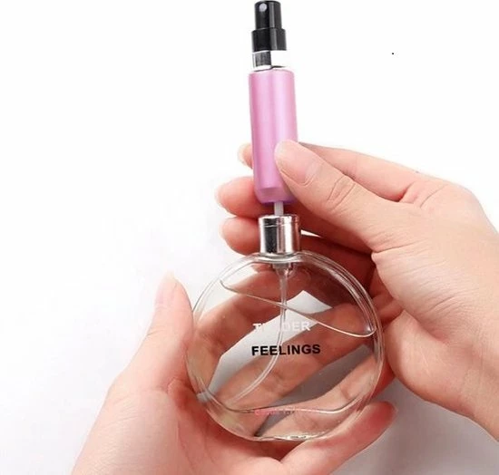 De verstuiver is makkelijk te vullen, met een pomp beweging krijgt u de parfum in de verstuiver.