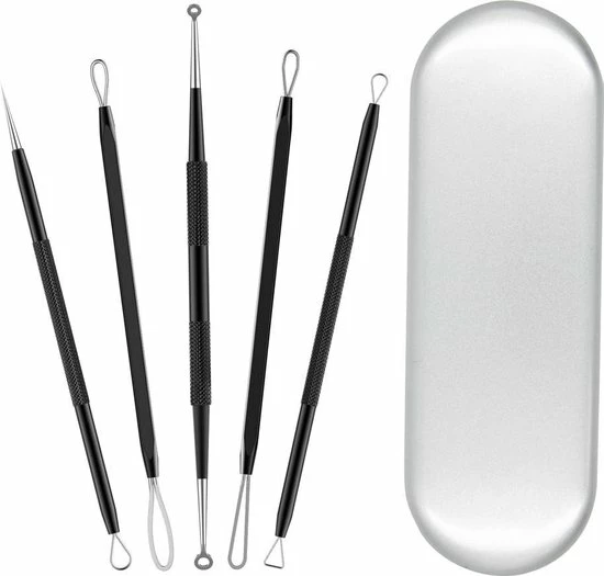 - Multi-Functioneel: Deze 5 in 1 multifunctionele Professionele Huidverzorgingsset helpt bij het verwijderen van mee-eters, puistjes, acne.. Deze set is ook perfect om te worden gebruikt om ingegroeide haren te verwijderen. Elk hulpmiddel heeft zijn eigen functie om het gezicht schoon en glad te houden zonder enige roodheid of littekens van het pimple poppen