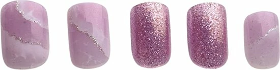 Giiiirl you will look cute with these! Fairy Princess bestaat uit roze glitter nagels en een soort paars/rozige marmeren effect afgescheiden met zilveren glitterlijntjes. Get back to your inner girly side with these nails!
