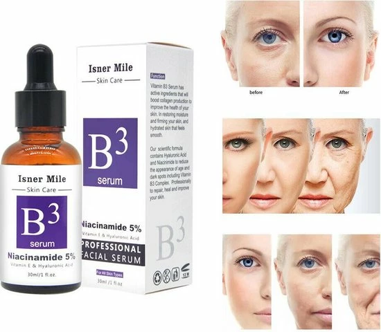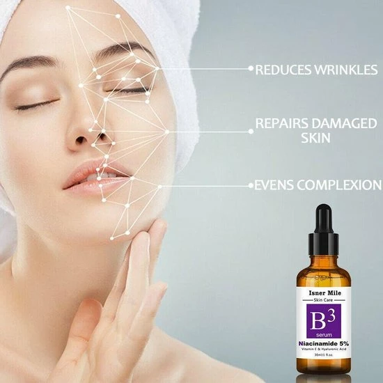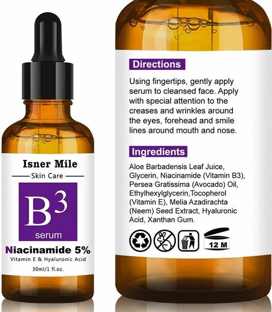 Niacinamide 5% (vitamine B3) vermindert huidproblemen als grove pori?n, fijne lijntjes en pigmentatie. Vitamine B3 is ook in staat om doeltreffend acnelittekens, pigmentatie, gebrek aan elasticiteit en roodheid te behandelen. De hoge concentratie Niacinamide verbetert de poriestructuur en versterkt de huidbarri?re. Niacinamide heeft ontstekingsremmende effecten op de huid en kan heel goed gebruikt voor de behandeling van huidaandoeningen zoals acne en rosacea.