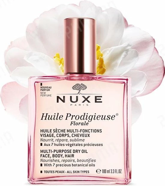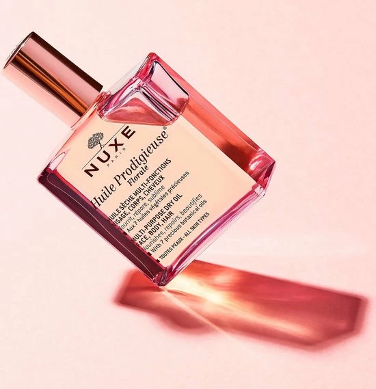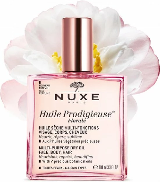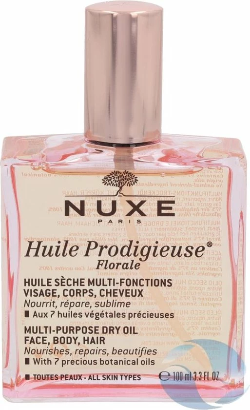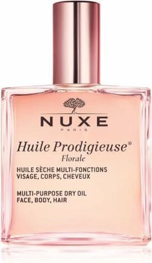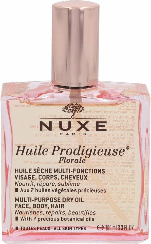 De Huile Prodigieuse Floralel van Nuxe is een hydraterende olie voor het haar en de huid van zowel het lichaam als het gezicht. De olie is geformuleerd met zeven botanische oli?n die de olie een bloemige geur geven. De olie hydrateert het haar en de huid langdurig en heeft het vermogen om striae te verminderen. De olie heeft een antioxiderende werking en beschermt tegen invloeden van buitenaf.