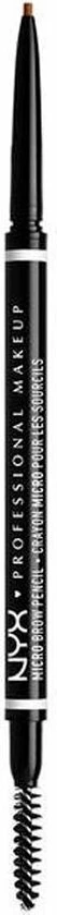 Verzorgde wenkbrauwen omlijsten het gezicht en geven het meer karakter. Met een wenkbrauwpotlood kun je jouw wenkbrauwen inkleuren en bijtekenen. De Micro Brow Pencil is een dun potlood waarmee je gemakkelijk nauwkeurig kunt werken. De Brow Pencil geeft niet te veel kleur af, waardoor je de intensiteit van de kleur zelf stap-voor-stap opbojet. De Micro Brow Pencil van NYX Professional Makeup bevat een handig draaimechanisme, waardoor het potlood nooit geslepen hoeft te worden. Aan de achterkant zit een ingebouwde ?spoolie brush?, dit is een borsteltje waarmee je de haartjes in de juiste richting borstelt. Deze kun je vooraf gebruiken om de haartjes alvast hun natuurlijke kant op te borstelen en na het bijtekenen om het pigment van het wenkbrauwpotlood te verdelen. Dit geeft de wenkbrauwen een natuurlijker en zachter effect.