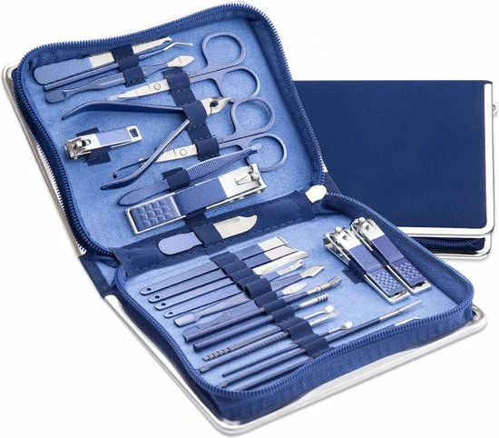 Royal WM Professionele Manicure Set – 26 Delig – Donker Blauw – Pedicure – Nagelknipper – Pincet – Puisten Verwijderaar