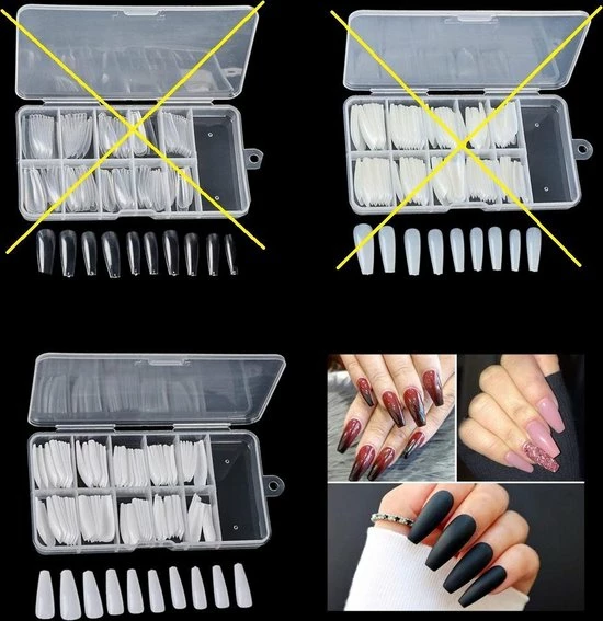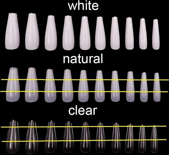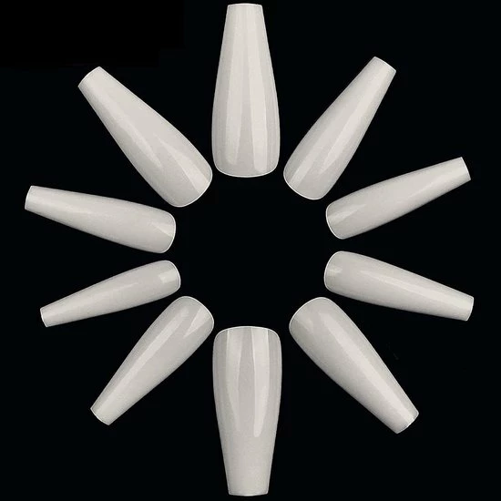 Royala ballerina (ook wel Coffin genoemd) nageltips Wit 100 stuks, Premium Quality! In handige assortiments-tips box.