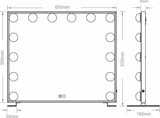 14 witte led-lampen een en prachtige weerspiegeling maken van deze spiegel het ultieme accessoire voor het bereiken van een prachtige gloed. Tover je kleedruimte om tot de ware beauty salon.