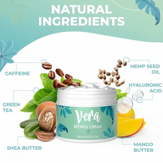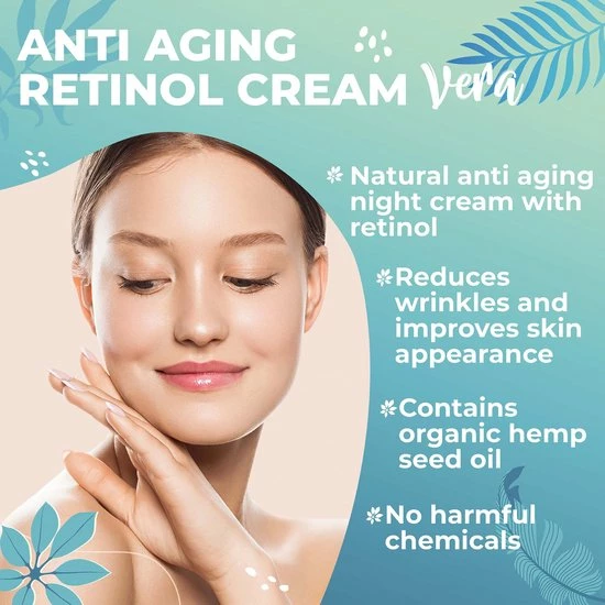 VERA’s anti-verouderingscrème is gemaakt met natuurlijke ingrediënten om de zichtbare tekenen van veroudering te helpen verminderen. Het bevat retinol en hyaluronzuur om een gezonde huid te bevorderen. De hennepzaadolie hydrateert de huid en biedt natuurlijke antioxiderende eigenschappen. VERA heeft met deze nachtcrème voor de normale tot droge huid een crème ontwikkelt, die boordevol antioxidanten en andere natuurlijke ingrediënten zit.