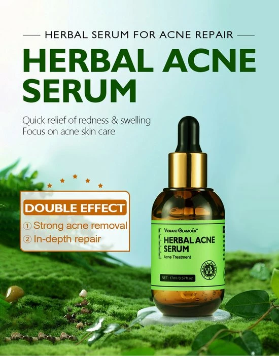 Vibrant Glamour Herbal Acne Serum is een face serum gemaakt voor mensen met acné en is speciaal geschikt voor de gevoelige huid. Het serum hydrateert de huid, terwijl het de olieproductie in evenwicht brengt. Alle oliën in dit serum zijn uitgekozen, omdat ze de huid niet verstoppen.