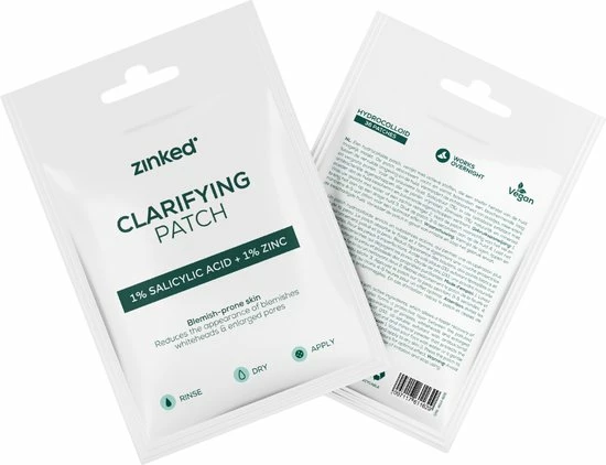 Een hydrocolloïde patch die de penetratie van actieve stoffen bevordert en een sneller herstel van de huid mogelijk maakt. Het vormt bovendien een beschermende laag tussen de vervuilde omgeving en de huid. Salicylzuur (1%): in olie oplosbare exfoliant met antibacteriële eigenschappen die de poriën vrijmaakt. Zinkoxide (1%): natuurlijk en mineraal poeder dat de huid beschermt en zuiverende eigenschappen vertoont. Voor acne-gevoelige huid. Vermindert de zichtbaarheid van puistjes, mee-eters en vergrote poriën.